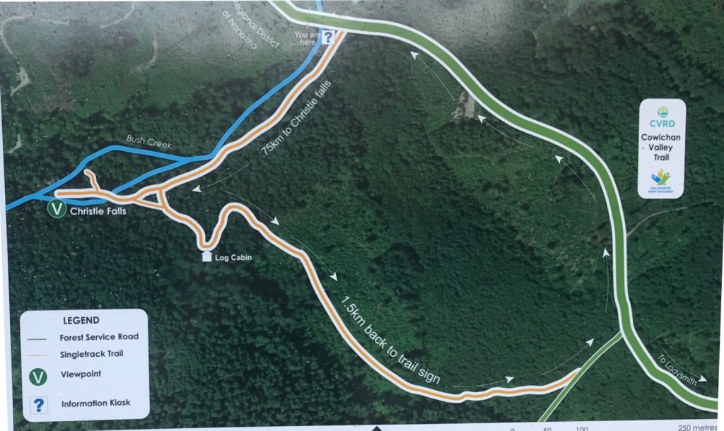 The path to the falls itself starts at the Ladysmith fish hatchery/sportsman club and is very short at only 0.75km along the river to take in the view. The hike to get to the fish hatchery/sportsman’s club however is a bit longer.