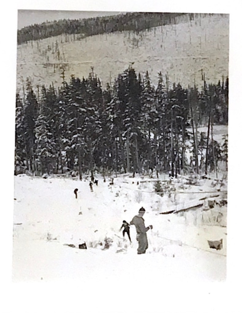 During the summer, a second 1,000-foot ski tow was built above the original 750-foot ski tow, situated just outside the cabin. Additionally, two primary ski slopes were bulldozed to remove any stumps.